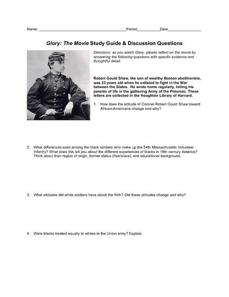 Download GLORY THE MOVIE STUDY GUIDE QUESTIONS ANSWER Doc